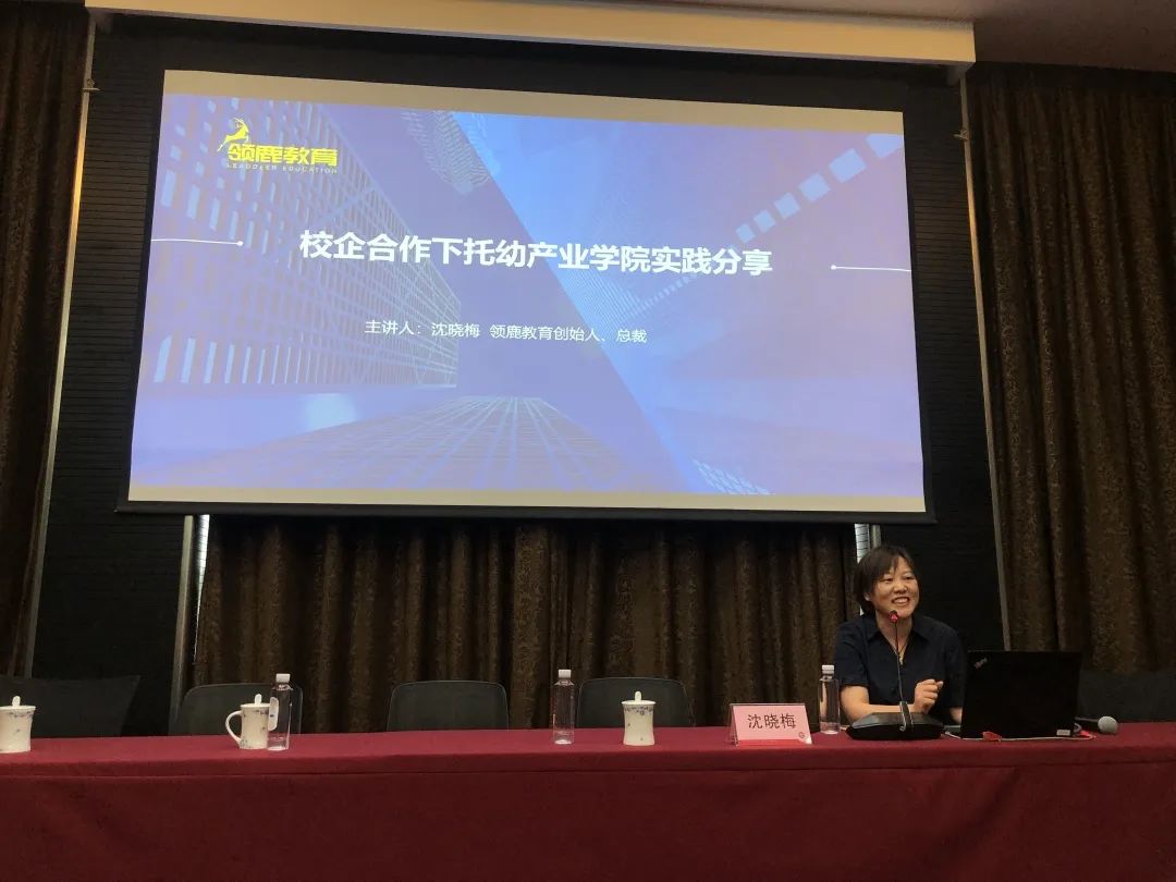 沈总以“校企合作下托幼产业学院实践分享”为题,分享了校企共建托幼产业学院的成功经验。她以“校企合作”为切入点,以领鹿托幼产业学院为案列,从“招生、教学、实训室建设、就业、社会赋能”五个板块重点剖析了托幼产业学院构建的理念、模式和路径,引起强烈反响。