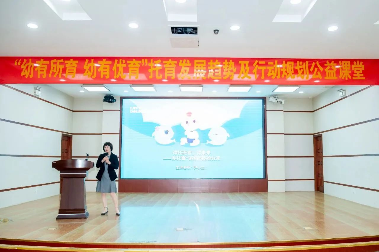 扬州市卫健委人口家庭处副处长刘砺致辞,她表示优质托育服务为人的一生发展夯实基础,市卫生健康委员会一直把托幼作为民生大事摆在重要位置,并全力支持、积极推进婴幼儿照护服务发展。