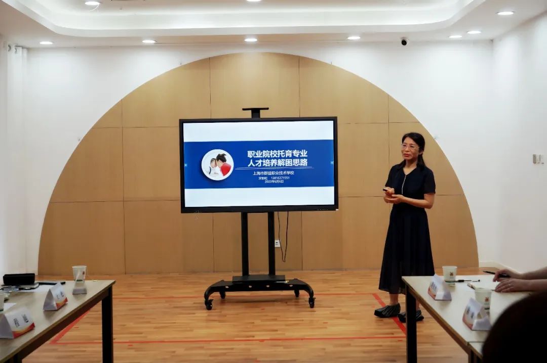 上海市群益职业技术学校幼儿保育专业部原主任宋彩虹以“职业院校托育专业人才培养解困思路”为题做交流分享 ,她从托育专业人才培养方案制定、实习实训基地建设、师资队伍建设、学生职业认同感培养等方面阐述了对托育专业人才培养的思考。她表示,领鹿教育在推动学前教育产教融合方面做出诸多努力,为促进托育人才培养、校企交流发挥了积极的作用。