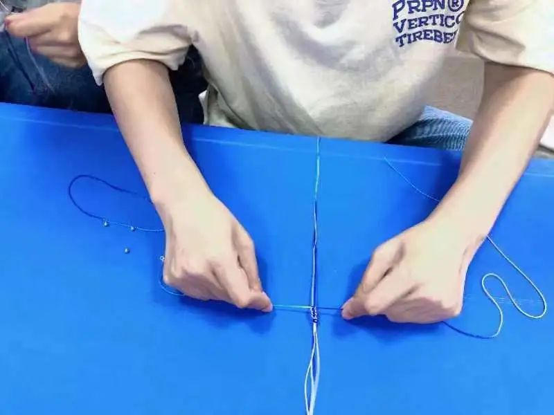 在端午节这天,民间有着在孩子的手腕、脚腕处系五彩绳的习俗,寄托祈福纳吉的愿望。这种五彩绳的编织方法也叫绳结艺术,它以五彩丝线为材料,通过绾、结、穿、绕、缠、编、抽等技法,编成各种结式和艺术造型。
